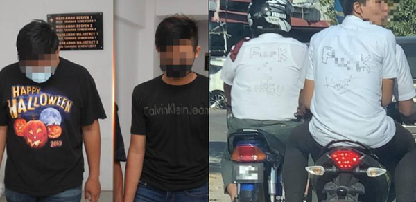 Last week, a photo showed the students riding motorcycles after completing their Sijil Pelajaran Malaysia (SPM) examinations and the boys wearing secondary school uniforms with profanities on their shirts.