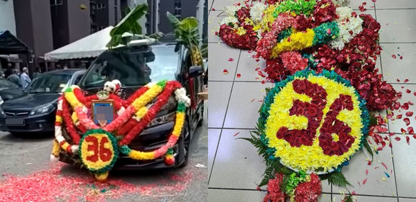 In a 36-second long video that SAYS sighted, a multi-purpose vehicle (MPV) can be seen carrying a photo of the deceased, while beneath it is a wreath that features the number ’36’.