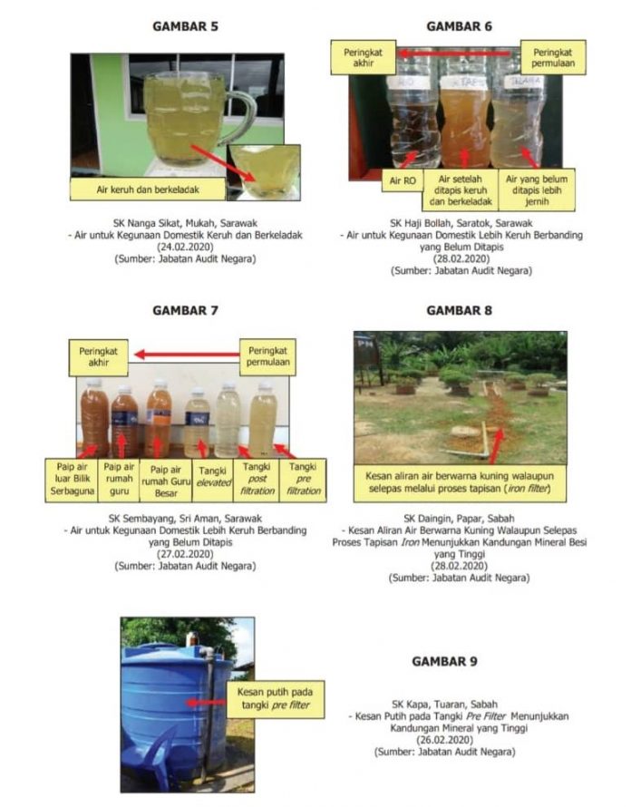 A page from the Auditor-General’s Report (LKAN) 2019 Series 1 shows water samples taken during its audit on tube wells in rural schools in Sarawak and Sabah.