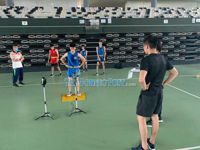 Wushu (sanda) athletes undergoing a test in Sibu. — Photo courtesy of SSC