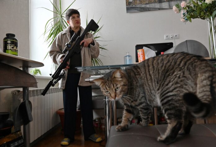 KYIV (Ukraine), Jan 30 — Standing in the dining room of her Kyiv flat, mother-of-three Mariana Zhaglo pulls her long rifle out of its khaki case.