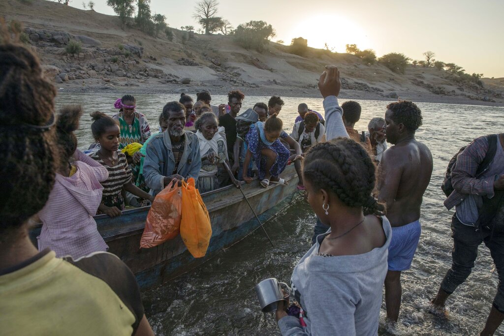 Tigray refugees arrive on the banks of the Tekeze River on the Sudan-Ethiopia border on Wednesday. (AP pic)