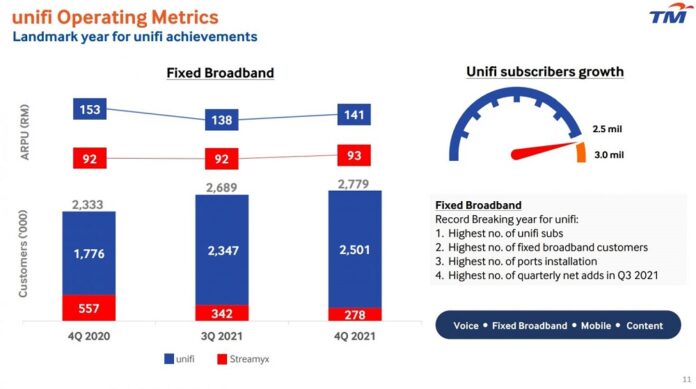 TM has also gained a significant increase in Unifi Fibre broadband subscriptions with over 2.5 million customers at the end of last year.
