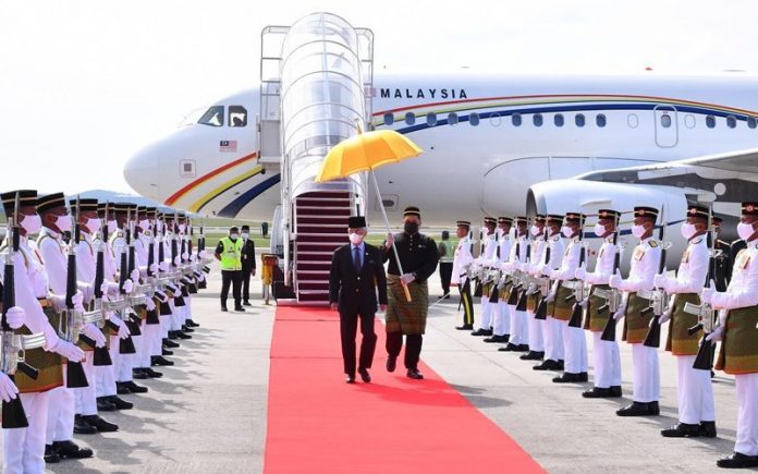 Menurut kenyataan yang dimuat naik menerusi Facebook Istana Negara, pesawat khas yang membawa Seri Paduka dan delegasi selamat mendarat pada 11 pagi.