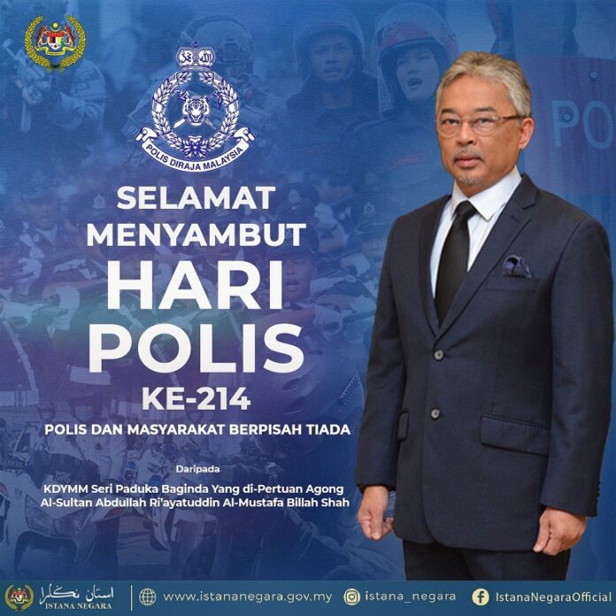 KUALA LUMPUR, March 25 ― Yang di-Pertuan Agong Al-Sultan Abdullah Ri’ayatuddin Al-Mustafa Billah Shah wishes Happy 214th Police Day to all dedicated police officers nationwide, including police veterans and retirees.