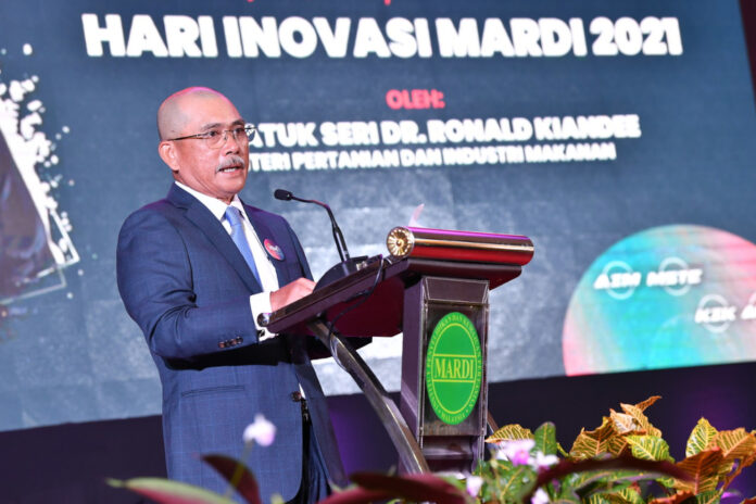 Agriculture and Food Industries Minister Datuk Seri Ronald Kiandee speaks at Mardi’s Innovation Day 2021 in Serdang, October 12, 2021. — Bernama pic
