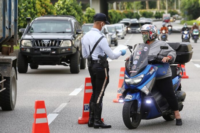 Muda alleged the authorities applied a double standard to VIPs and ministers who violate the standard operating procedures while punishing regular Malaysians. File picture shows police manning a roadblock along Jalan Syed Putra in Kuala Lumpur January 13, 2021. ― Picture by Choo Choy May