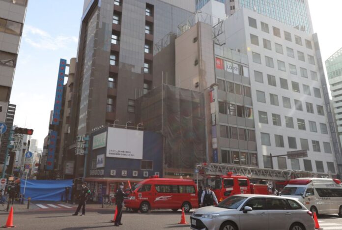 A picture shows a fire site in Osaka City, Osaka Prefecture on Dec. 17, 2021. An about 20-square-meter clinic on the fourth floor was burnt. — The Yomiuri Shimbun pic via Reuters