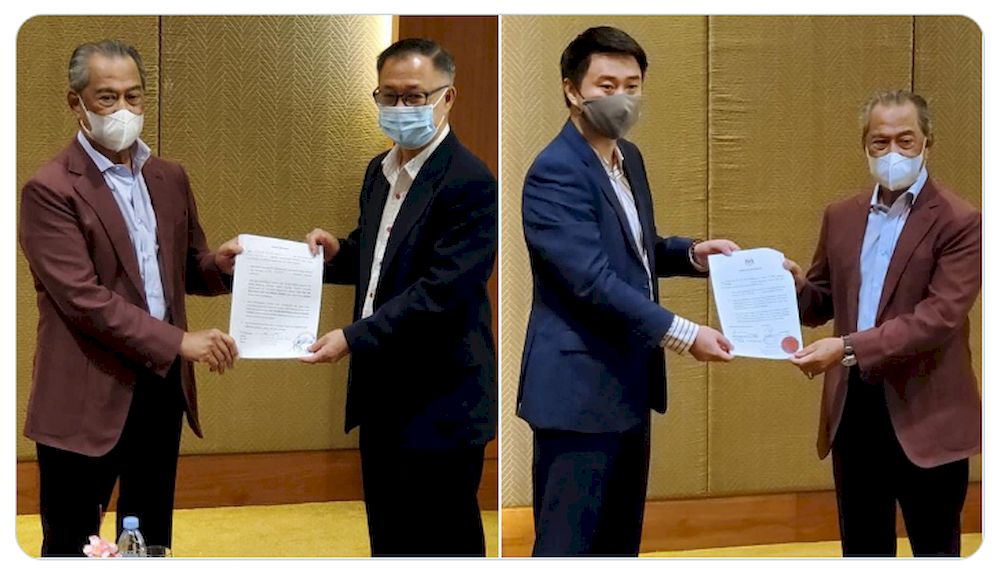 The photographs showed Julau MP Sng and his Tebrau counterpart, Choong, each posing separately with Muhyiddin while displaying what appeared to be signed documents.