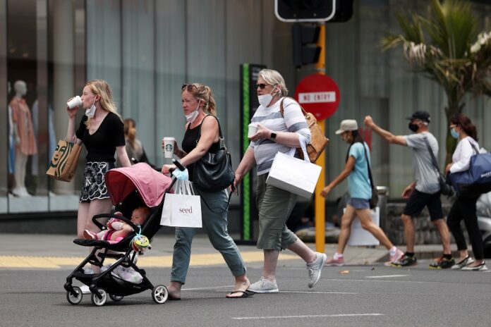 Shoppers walk through a retail district in the wake of coronavirus disease lockdown restrictions being eased in Auckland, New Zealand November 10, 2021. — Reuters pic