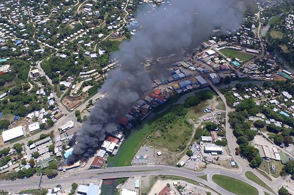 Smoke from burning buildings rise from Honiara on the Solomon Islands on November 25, 2021, on the second day of rioting that left the capital ablaze and threatened to topple the Pacific nation’s government. — AFP pic