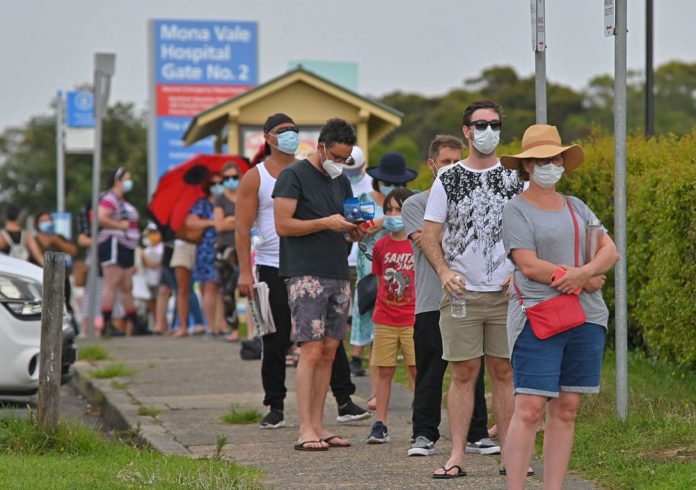 People line up for a Covid-19 coronavirus testing at Mona Vale Hospital in Sydney. — AFP photo