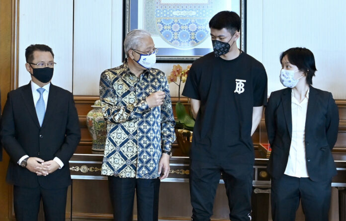Prime Minister Datuk Seri Ismail Sabri Yaakob with BAM president Tan Sri Mohamad Norza Zakaria (left), Lee Zii Jia and Goh Jin Wei (right) during a meeting at Perdana Putra in Putrajaya, January 27, 2022. — Bernama pic