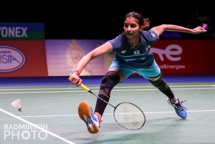 Malaysia’s S. Kisona in action with Indonesia’s Gregoria Mariska Tunjung in this file picture taken on October 1, 2021. ― Picture via Twitter/bernamadotcom
