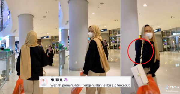 Namun, lain pula dengan video ini apabila seorang gadis terpaksa menahan malu gara-gara tali beg putus telah menarik perhatian ramai.
