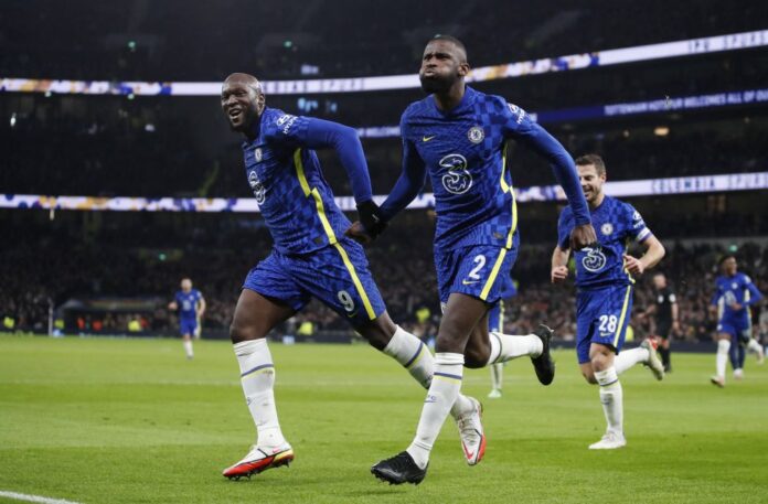 Chelsea’s Antonio Rudiger celebrates scoring their first goal against Tottenham Hotspur with Romelu Lukaku at the Tottenham Hotspur Stadium, London January 12, 2022. — Reuters pic