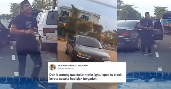 Pemandu kereta Perdana itu dilihat berang dan cuba mengejar kereta dihadapannya. Dia dilihat sengaja berhentikan kereta sebaik saja dapat memotong kereta depannya itu. Pemandu itu dilihat turun daripada kereta lalu tunjuk marah dan tidak berpuas hati.