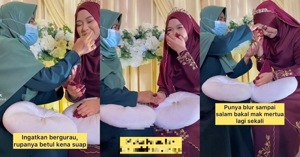 Apa yang menarik perhatian ramai adalah apabila bakal mak mentuanya itu tiba-tiba mengambil daun sirih dan menyuap ke dalam mulutnya.