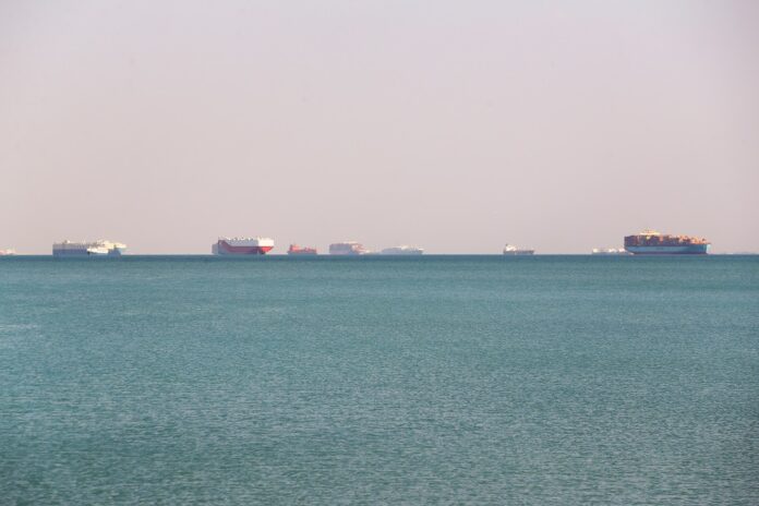 Ship are seen outside the Suez Canal, where a container ship ran aground and blocked traffic, in Great Bitter lakes in Abu Sultan village in Ismailia, Egypt March 25, 2021. ― Reuters pic