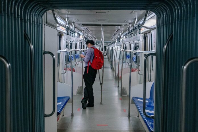 A passenger dons a face mask during a ride on the LRT train in Kuala Lumpur June 1, 2021. — Picture by Firdaus Latif