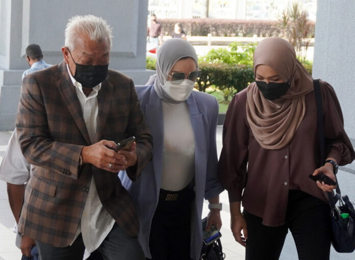 Datuk Seri Bung Moktar Radin and his wife Datin Seri Zizie Izette Abdul Samad arrive at the Kuala Lumpur Court Complex, March 29, 2022. — Bernama pic