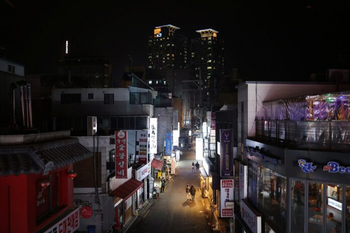 People leave a pub during the curfew hours starting at 9.00pm, as part of tightened social distancing rules to contain a surge in Covid-19 infections, in Seoul December 20, 2021. – Reuters pic