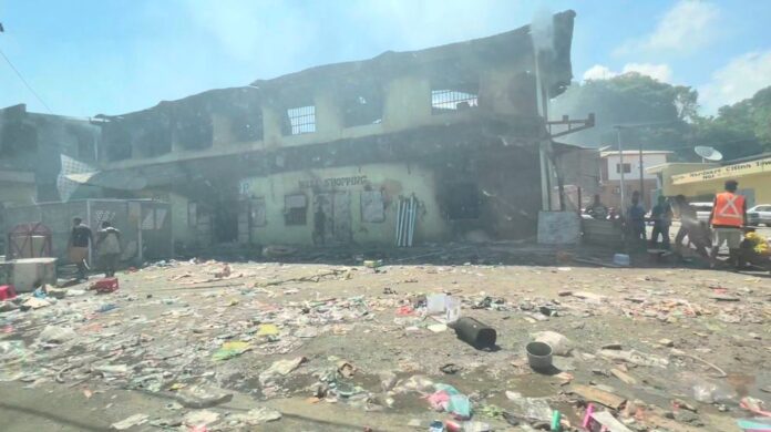 Destroyed building is pictured after days of unrest in Honiara, Solomon Islands November 27, 2021 in this still image obtained from a video. — Jone Tuiipelehaki/via Reuters