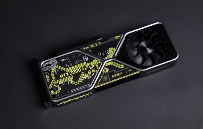 This isn’t the first time a Cyberpunk 2077-theme GeForce card has appeared in the spotlight. Earlier this year and long before the launch of the GeForce RTX 30 series cards, NVIDIA was giving away 200 units of special edition GeForce RTX 2080 Ti cards, fully dressed in Cyberpunk 2077’s iconic neon yellow and digital overflow design.