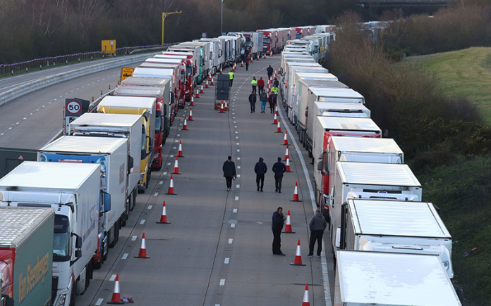 The move created a massive logjam with up to 10,000 trucks parked along highways as well as on the runway of the Manston airfield, according to EU transport commissioner Adina Valean, who criticised the French government’s decision.