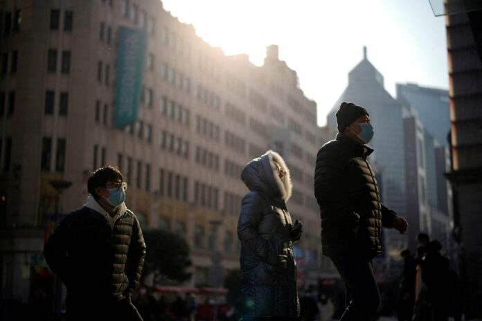 People wearing protective face masks walk on a street in Shanghai December 30, 2021. – Reuters pic