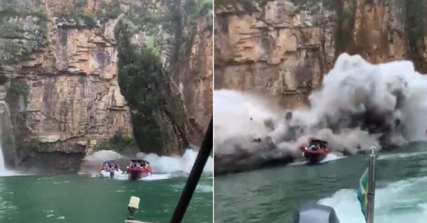 Boaters can be heard screaming in videos of the incident as the rock formation cascaded on the boats in Furnas Lake, which is located in Minas Gerais state.