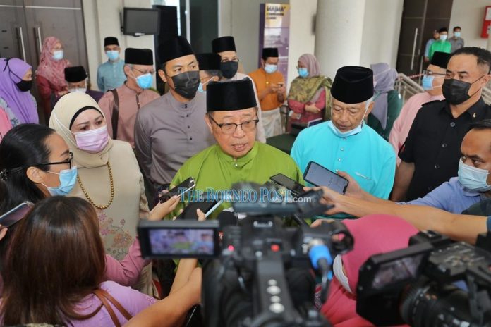 Abang Johari speaking to reporters after officiating the 10th anniversary of Mattary. – Photo by Chimon Upon
