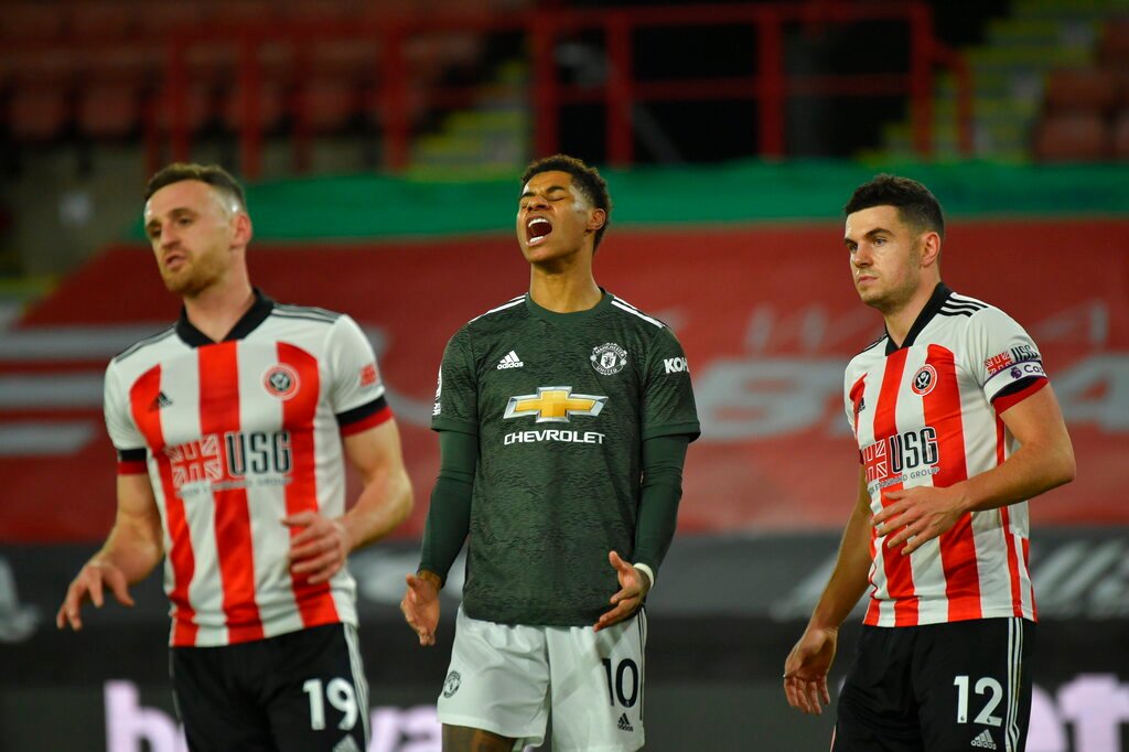 The Blades took a shock lead through David McGoldrick after a horrendous error by returning goalkeeper Dean Henderson but two goals from Marcus Rashford and a Anthony Martial strike turned the tables.