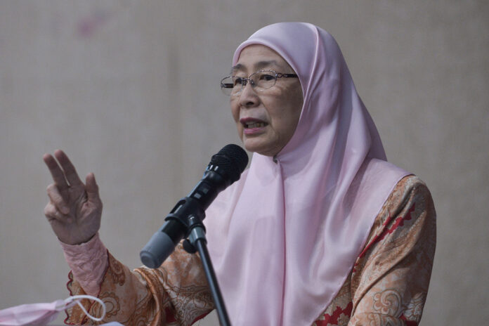 Datuk Seri Wan Azizah Wan Ismail speaks during the PKR Annual General Meeting at Lembah Pantai April 4, 2021. — Picture by Miera Zulyana