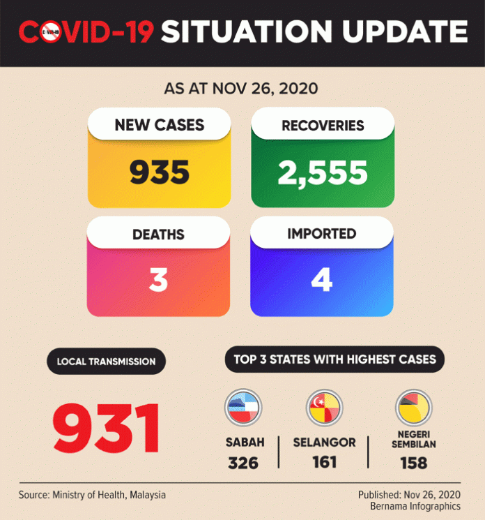 Dr Noor Hisham said the new daily Covid-19 cases recorded yesterday were 935 cases, bringing the total number of positive Covid-19 cases in Malaysia to 60,752 cases.