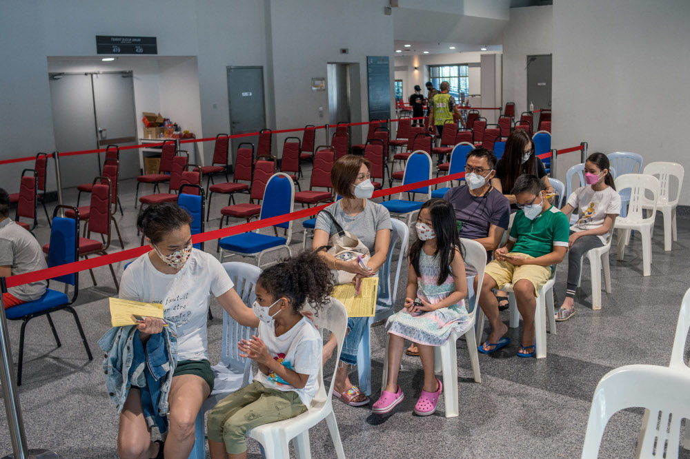Children between the ages of five and 12 get their Covid-19 vaccine during the National Covid-19 Immunisation Programme for Kids (PICKids) at Axiata Arena in Bukit Jalil, February 3, 2022. — Picture by Shafwan Zaidon