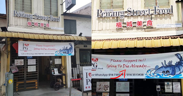 “Please support us! Going to die already…” reads a banner hung outside I Love Penang Street Food restaurant on Jalan Tengkera.