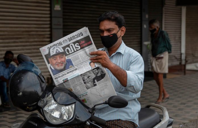 A man reads about the demise of Diego Maradona in Kochi. (AP pic)