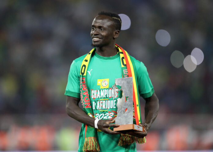 Senegal’s Sadio Mane celebrates with the player of the tournament award after the match, February 6, 2022. — Reuters pic