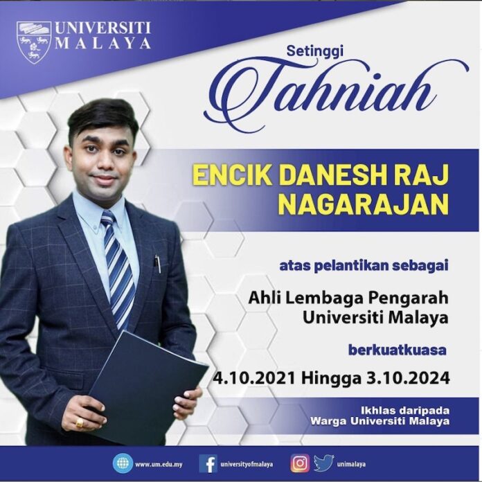 Danesh Raj Nagarajan’s appointment was question by the university’s students’ union. — Picture courtesy of Instagram/Universit Malaya