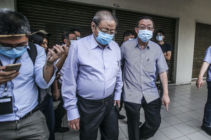 DAP veteran Lim Kit Siang and DAP secretary-general Lim Guan Eng leave PKR’s headquarters in Petaling Jaya October 29, 2020. — Picture by Hari Anggara