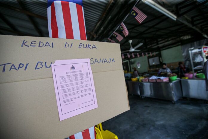 A DBKL notice ordering the closure of at an eatery is seen in Kampung Baru, Kuala Lumpur March 19, 2020. — Picture by Hari Anggara