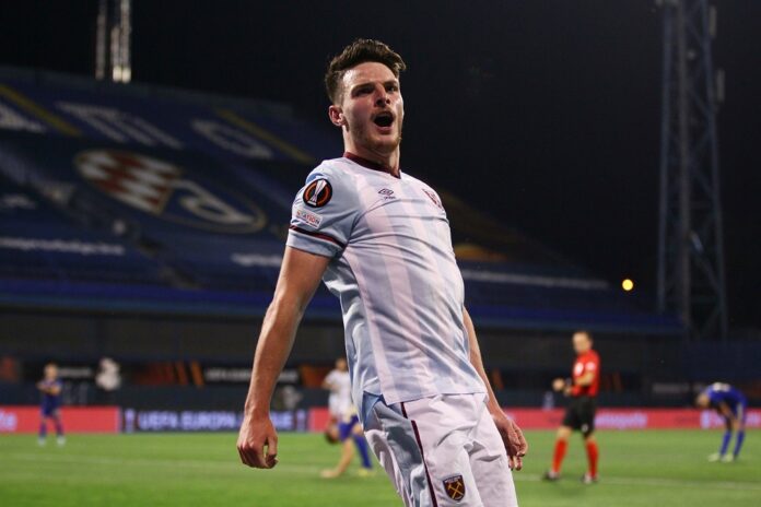 West Ham United’s Declan Rice celebrates after scoring the second goal against Dinamo Zagreb September 17, 2021. – Reuters pic REUTERS/Antonio Bronic
