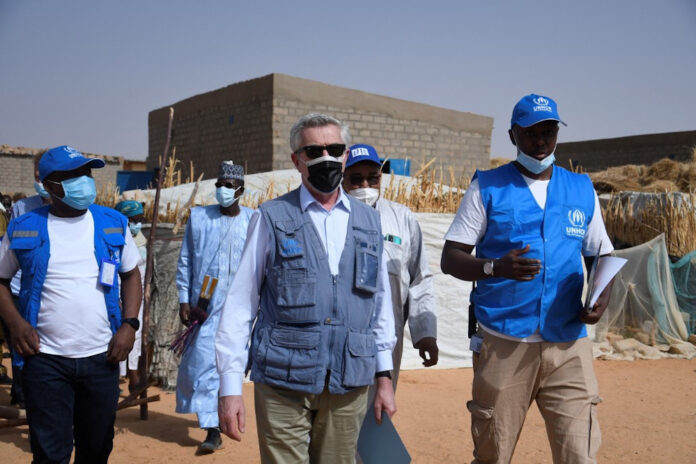 Filippo Grandi, United Nations High Commissioner for Refugees visits on February 2, 2022 a UN site where thousands Malian refugees live in Ouallam. — AFP pic