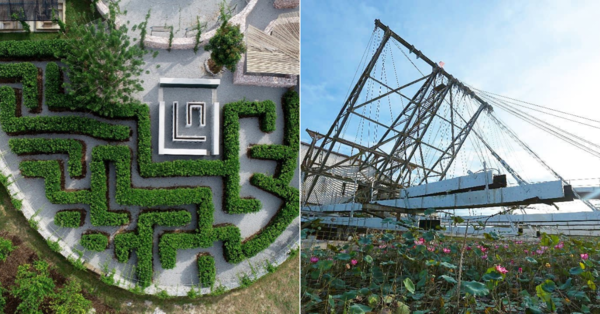 This maze park has a built-up area of 55,000sqft, and is shaped like a heart. It looks so pretty from these overhead shots!