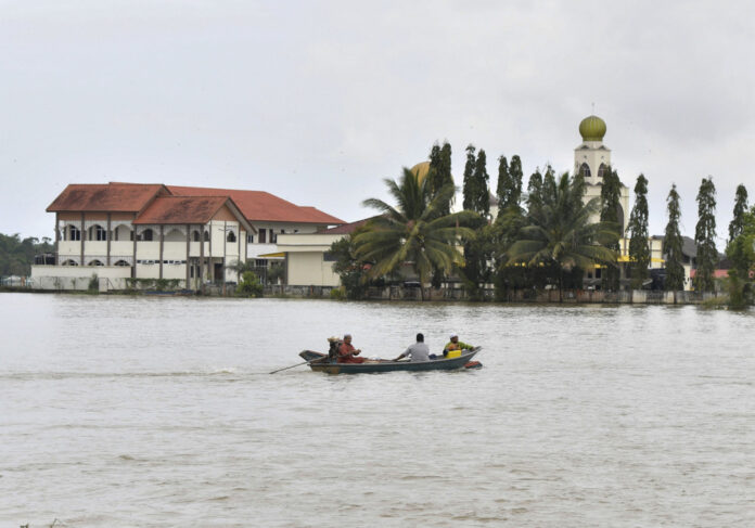 Residents of flood-stricken Kampung Simpangan in Tumpat, Kelantan, have to take a boat to attend Friday prayers, March 4, 2022. – Bernama pic