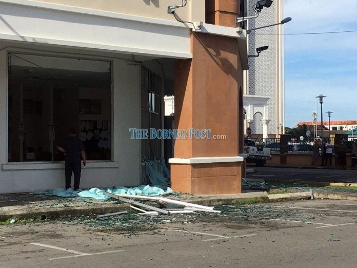 The explosion, which occurred at Miri 101 Commercial Centre, blew off the glass walls of the Forest Department office and left one staff with first-degree burns.