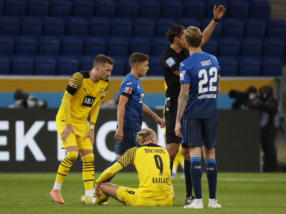 Borussia Dortmund’s Erling Braut Haaland sustains an injury against Hoffenheim at the PreZero Arena, Sinsheim January 22, 2022. — Reuters pic