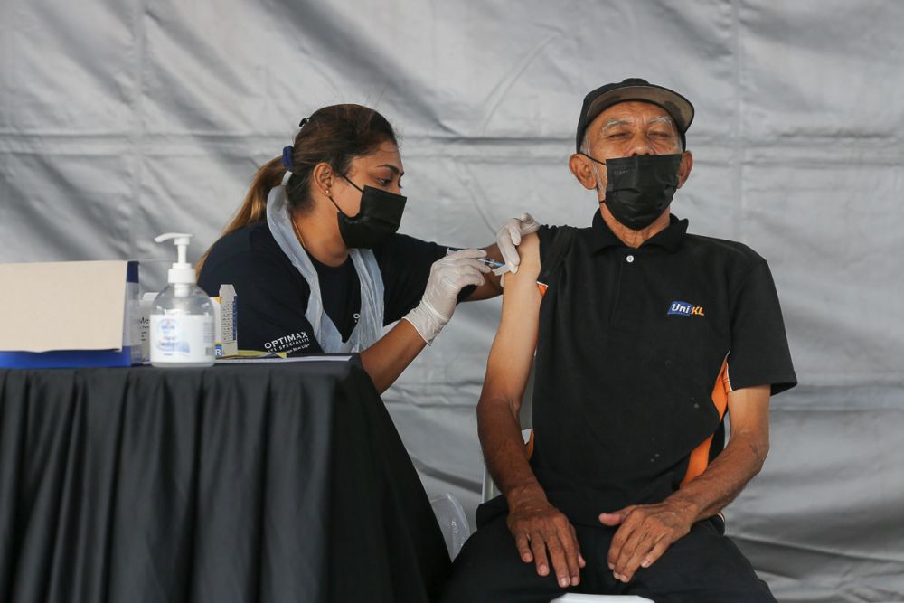 Members of the public receive their Covid-19 shot through the MYMedic@Wilayah Vaccine Mobile Truck programme at PPR Sg. Bonus in Setapak, Kuala Lumpur June 21, 2021. — Picture by Yusof Mat Isa