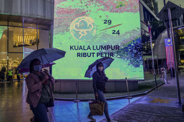 People are seen holding umbrellas during rainy weather in Kuala Lumpur in Bukit Bintang September 19, 2021. ― Picture by Hari Anggara